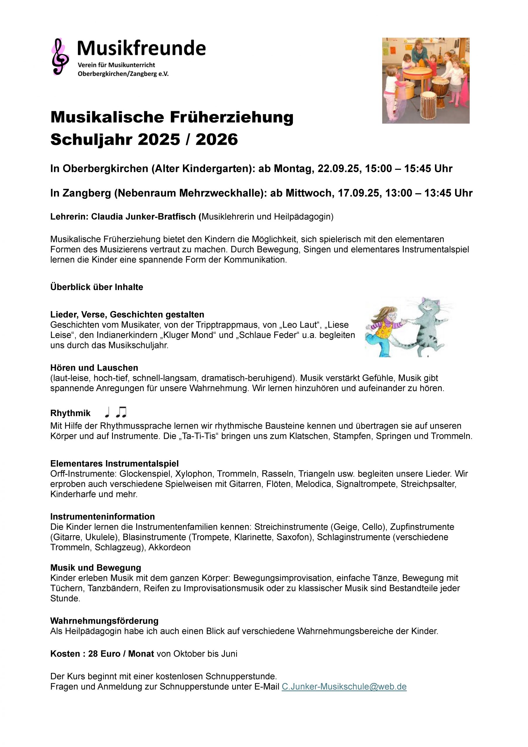 Musikalische Früherziehung in Zangberg ab dem Schuljahr 2025/2026