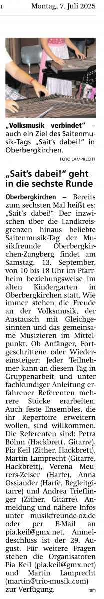 Sait’s dabei 2025 – 6. Saitenmusik-Tag in Oberbergkirchen 13.09.2025